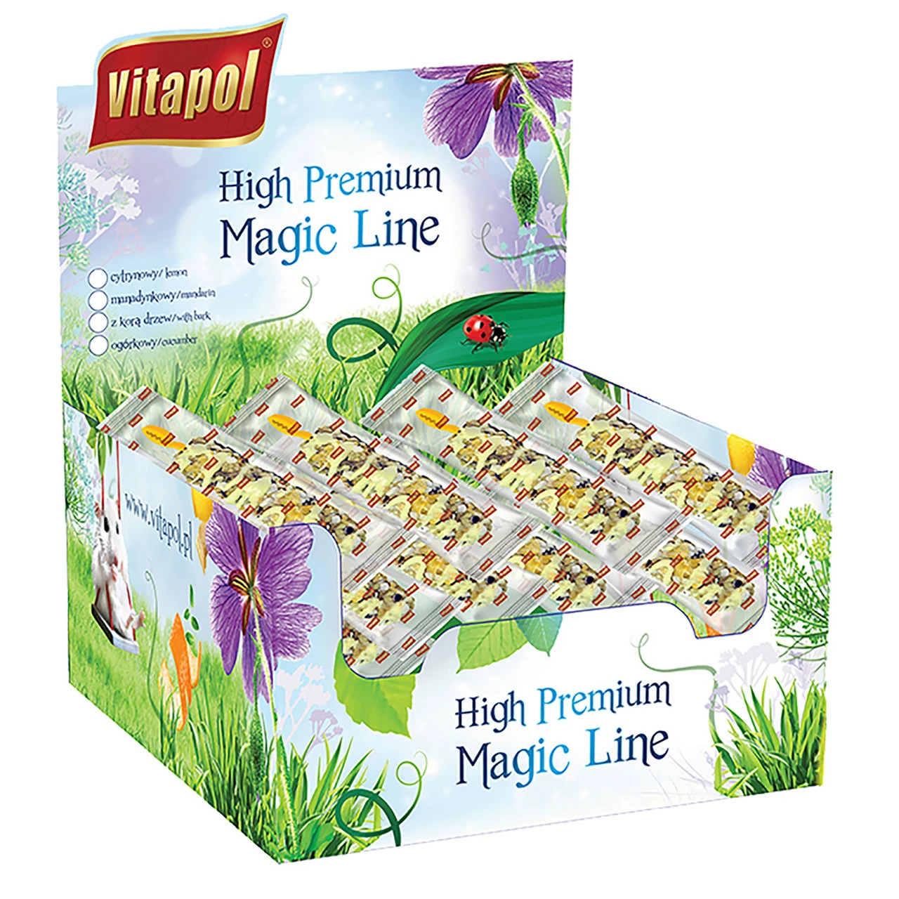 Magic Line Lemon Smakers for Small Animals: 10 ct Display Box. Made in Poland using the highest quality European Ingredients. Smakers covered with a tasty milk coating glaze complement the diet of small animals. Lemon peel contains antioxidants and pectins. It regulates spasms in the digestive tract, prevents damage to the gastric mucosa. Rich composition that provides all the necessary nutrients for your pet. 80% handmade. Added nutritional value due to unique drying process for positive functioning of the nervous system. Ensures regular grinding of incisors in rodents and rabbits