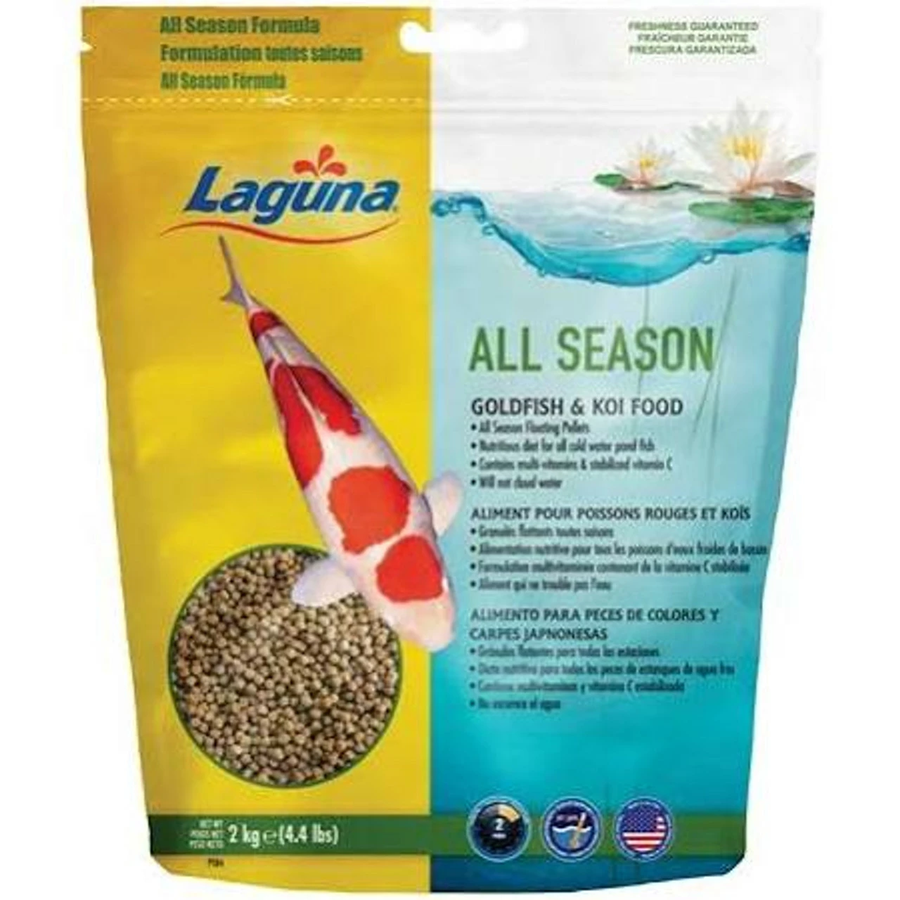 Laguna All Season Floating Fish Food Contains A Balanced Nutritional Formula For Goldfish, Koi And Cold Water Pond Fish. This Blend Of Vitamins, Minerals And Amino Acids Are Perfect For Everyday Feeding During The Warmer Months Of The Year. Our All Seas