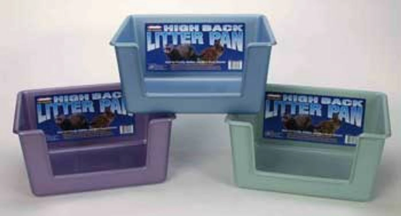 The Marshall high back litter pan integrates the best features of regular and corner litter pans, and is ergonomically designed for the unique bathroom habits of ferrets. With a 2-inch front lip and 7-inch high back corners, this pan can catch even t”