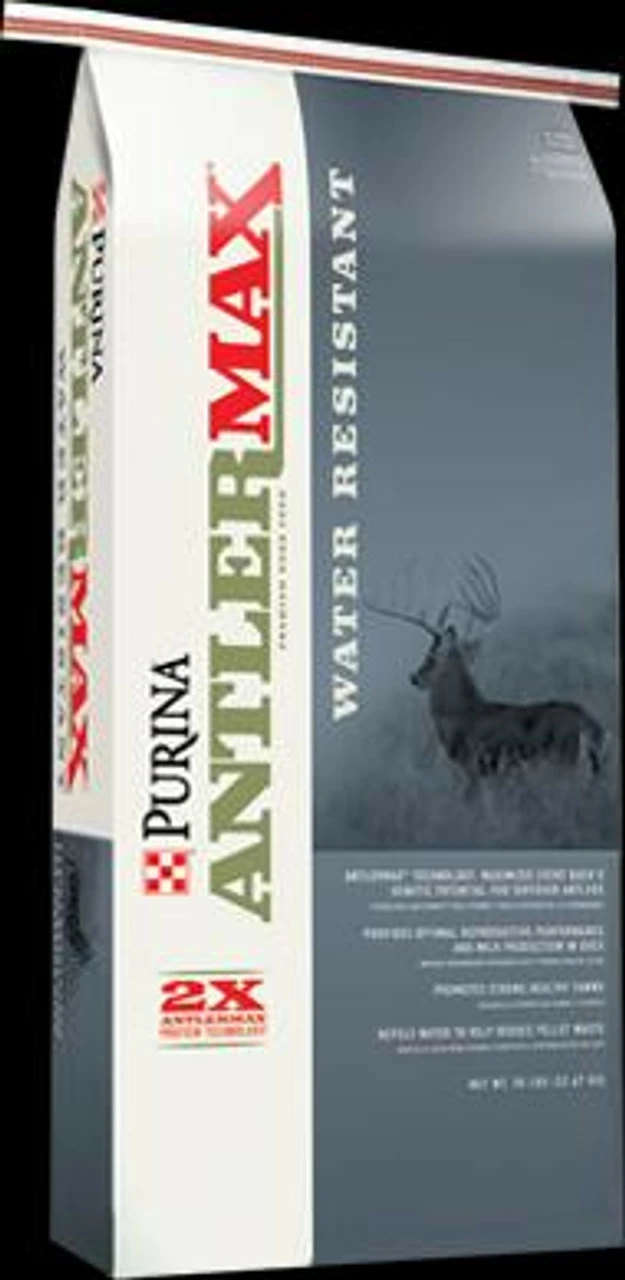 ANTLERMAXreg PELLETS For the development of optimal antler size and mass Provides for a high intake of highquality proteins including Antler – Maxreg By – Pass Protein technology that deliver high concentrations of amino acids needed by the growing antler Helps develop deer with exceptional body size Highquality protein helps maintain muscle to support body growth OPTIMUM LEVELS OF VITAMINS AND MINERALS Helps promote antler growth density and strength Optimum levels of calcium phosphorous magnesium and vitamin D Contains proprietary Antler – Maxreg Mineral Technology including organic trace minerals for replenishing depleted bone material stores used during antler mineralization DESIGNED TO REDUCE PELLET WASTE AND LABOR ASSOCIATED WITH WET CONDITIONS Waterresistance process that repels moisture The result is increased savings because of the dramatic reduction in pellet waste SUPPLEMENTS POOR OR SPARSE FORAGE So deer can maintain vigor during periods of environmental nutritional stress HIGH PALATABILITY Enhanced with fl avoring to attract deer to the feed so they receive the benefi t of a balanced diet – Nutrition Facts Crude Protein Min2000 Crude Fat Min200 Crude Fiber Max 1300 Calcium Ca Min125 Calcium Ca Max175 Phosphorus P Min 100 Salt Na – Cl Min 020 Salt Na – Cl Max070Storage Instructionsnbsp – Store in a dry area away from insects Do not feed moldy or insectinfested feed