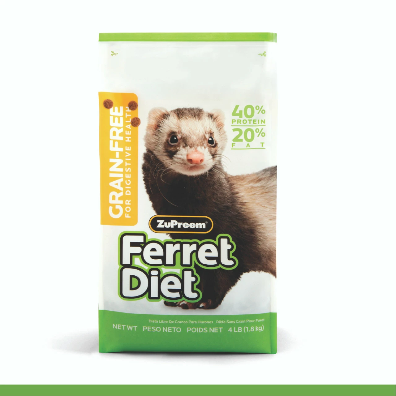 ZuPreem Grain-Free Ferret Diet helps support healthy digestion. Ferrets are meat lovers by nature and are simply not made to digest foods such as corn rice and soybeans. With 42% protein this diet includes high-quality meats for a great taste ferrets love.